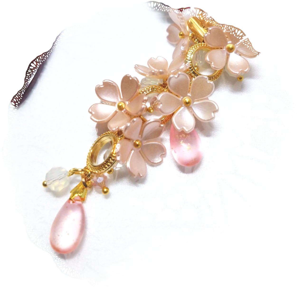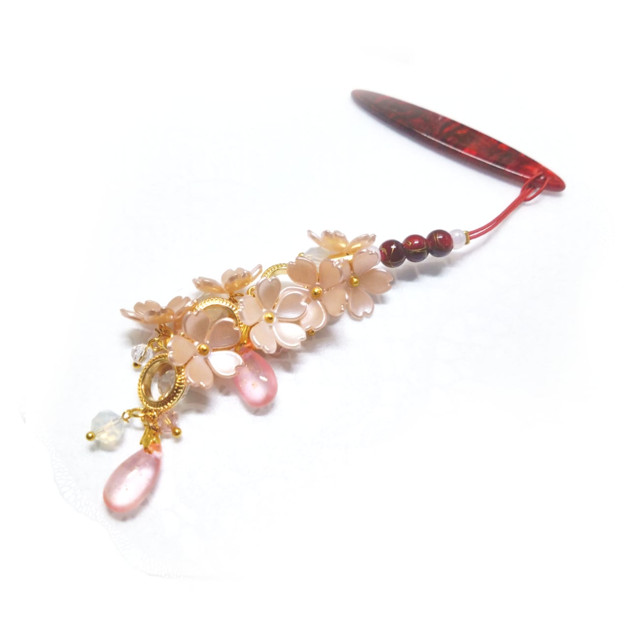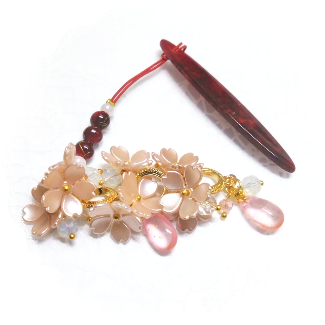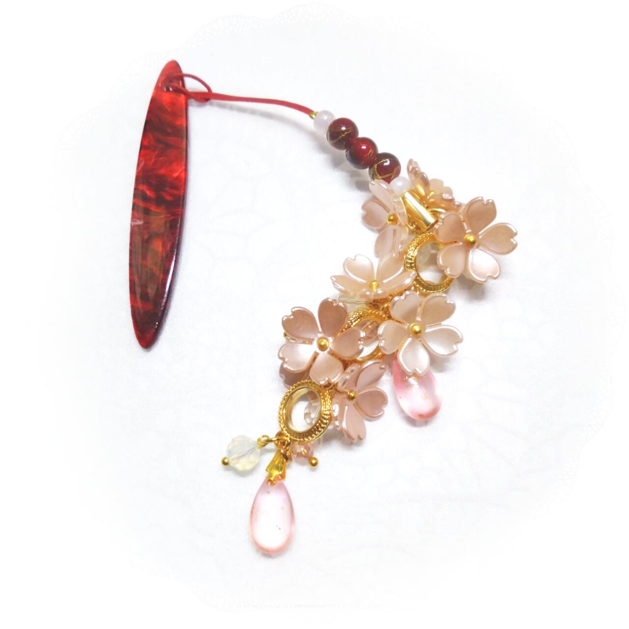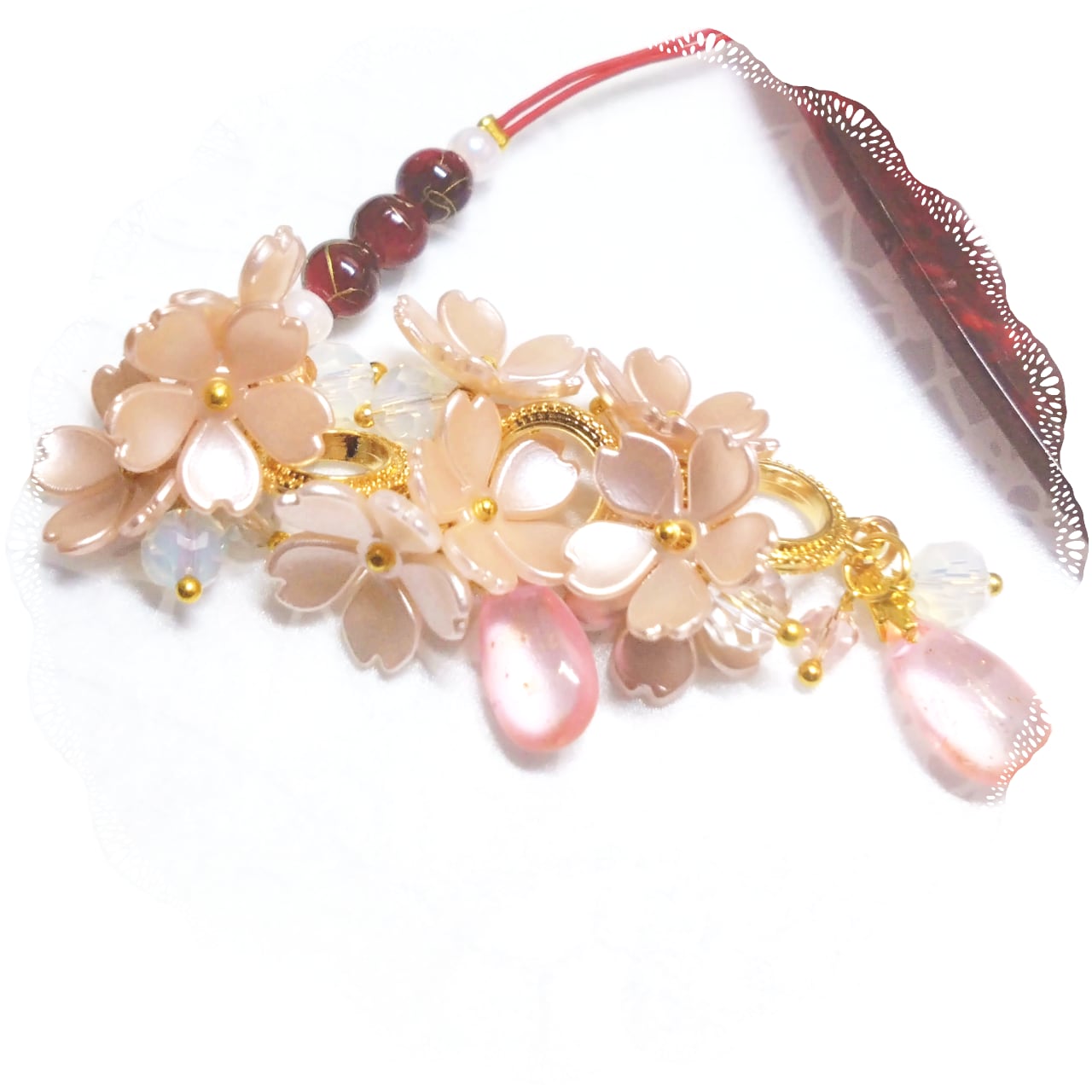 退紅色の桜をたくさん飾り心ときめく春の訪れを感じさせる根付