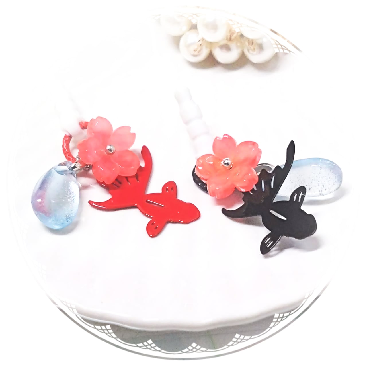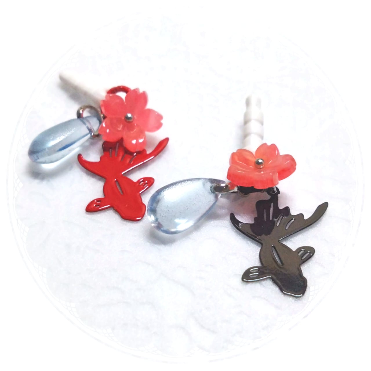 赤と黒の金魚が跳ねた水を滴らせるようなイヤホンジャック