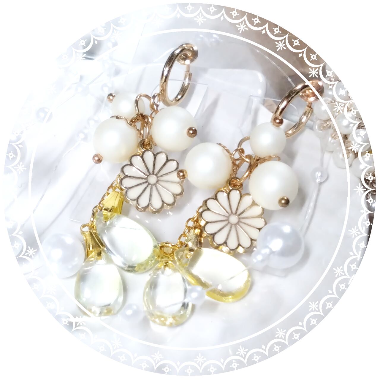 【イヤリング】白菊