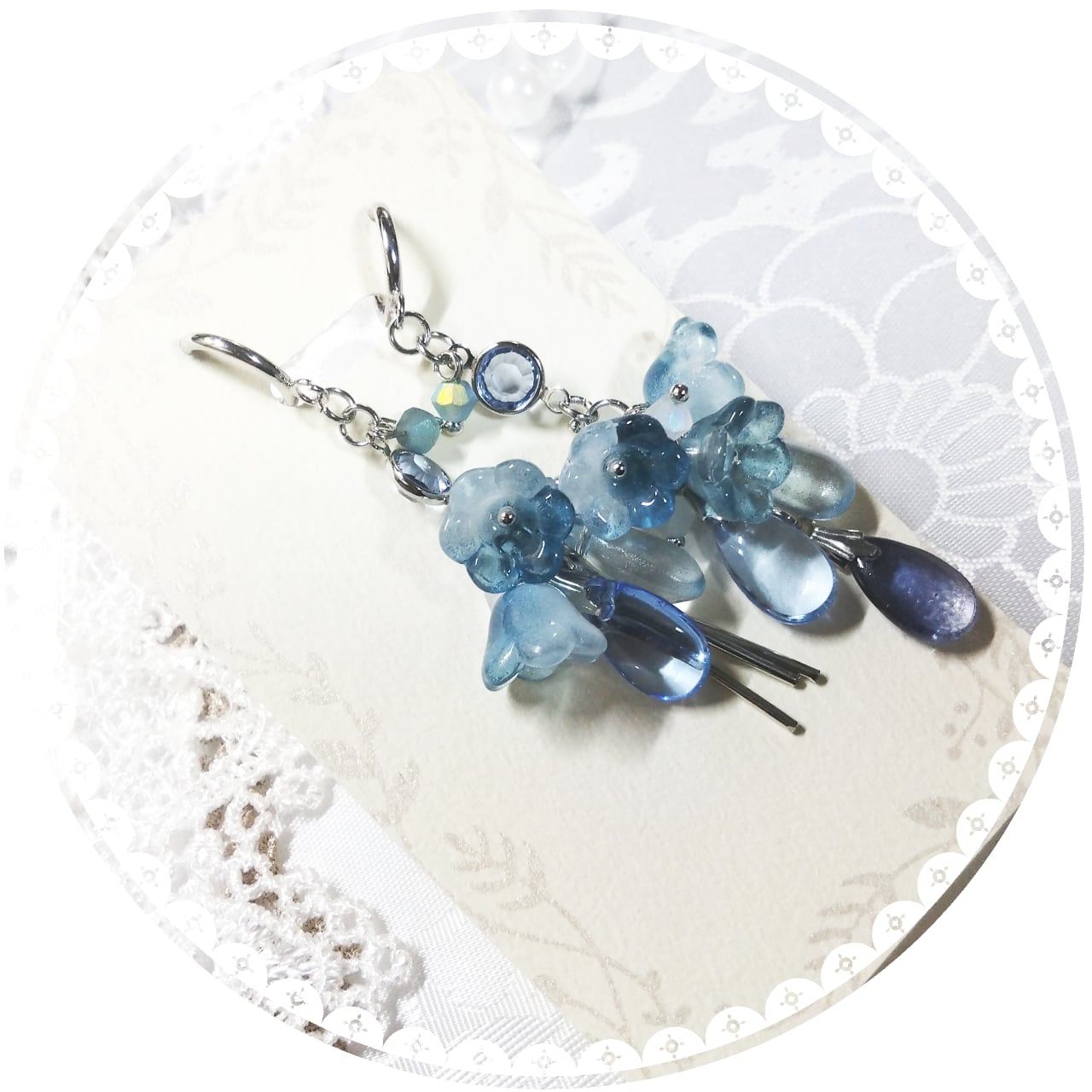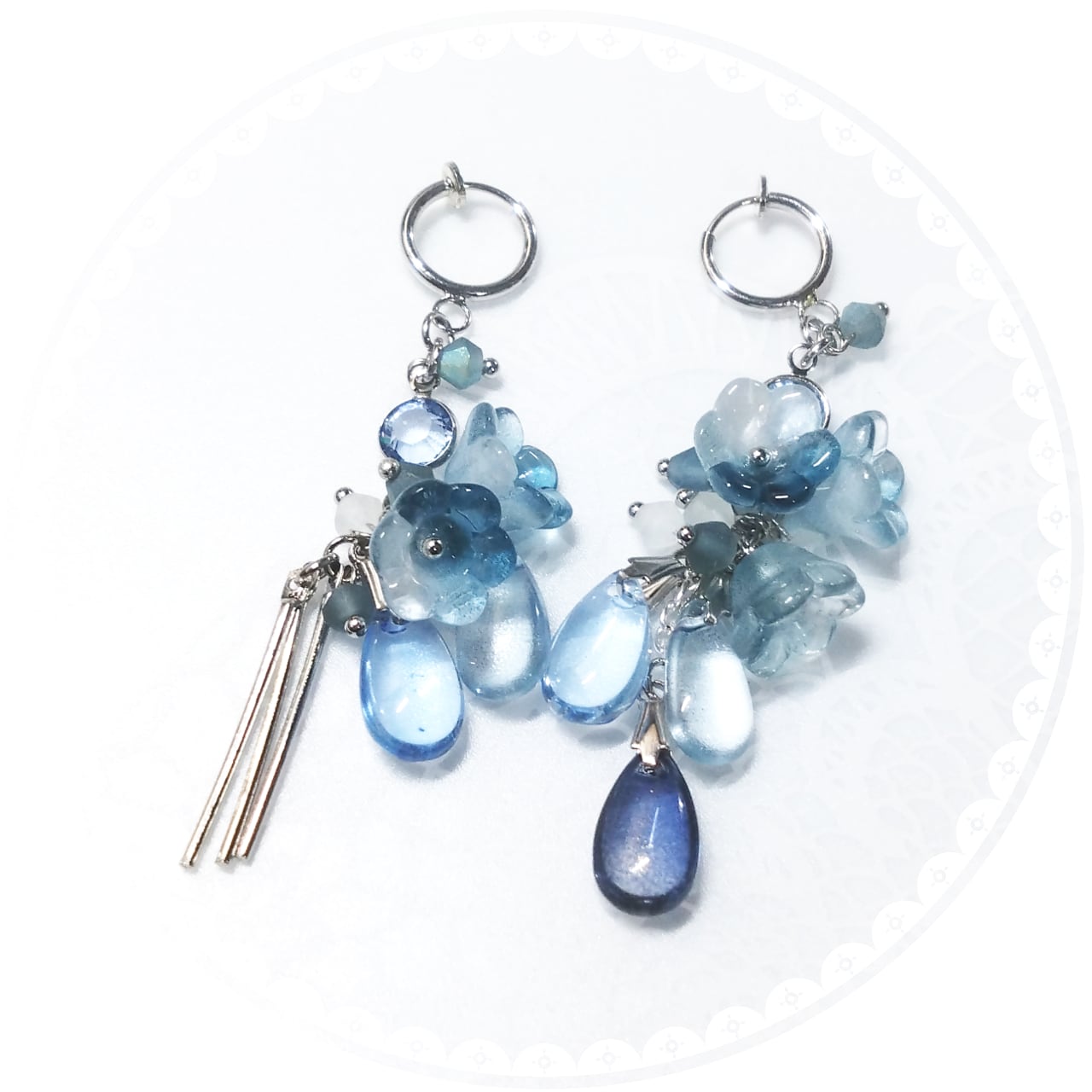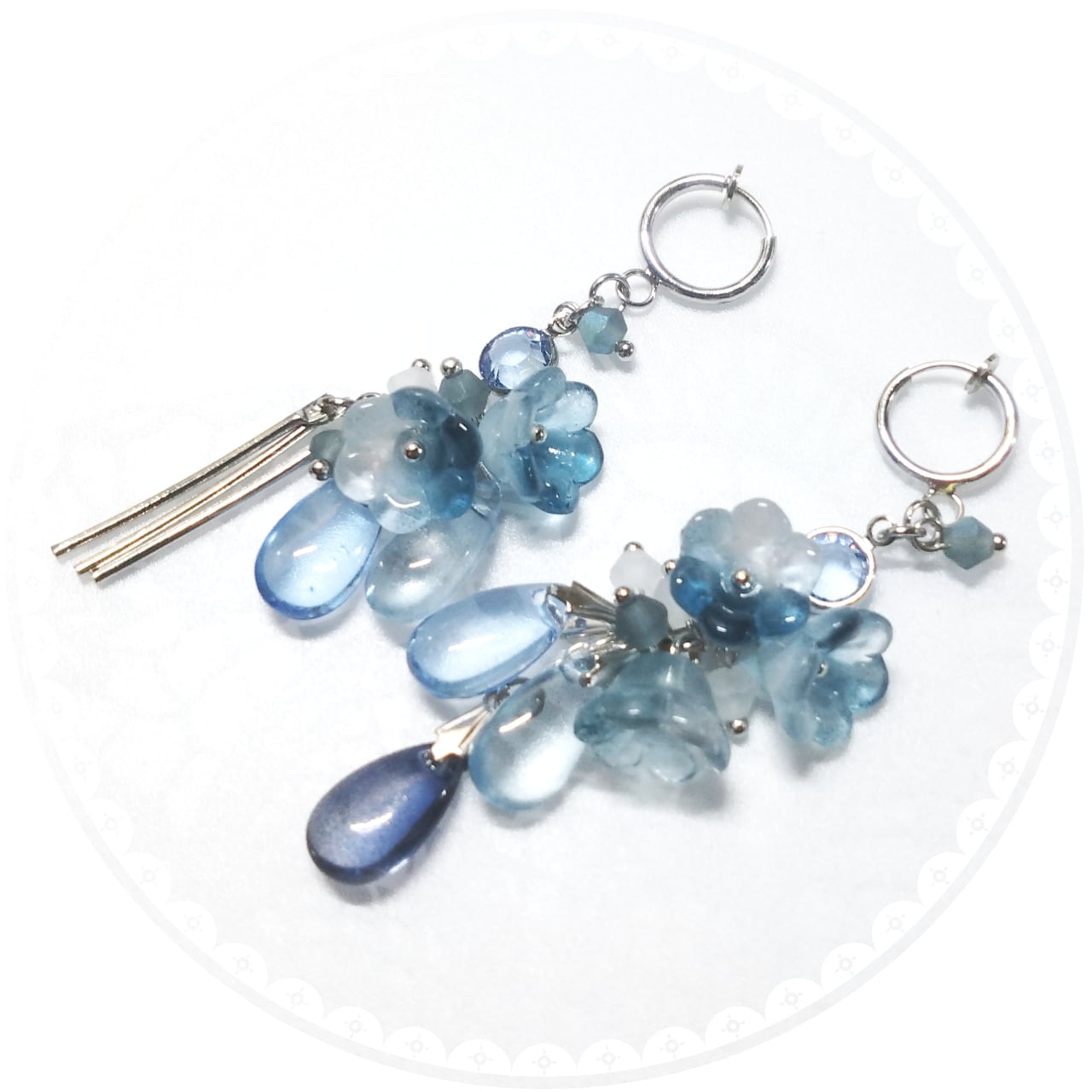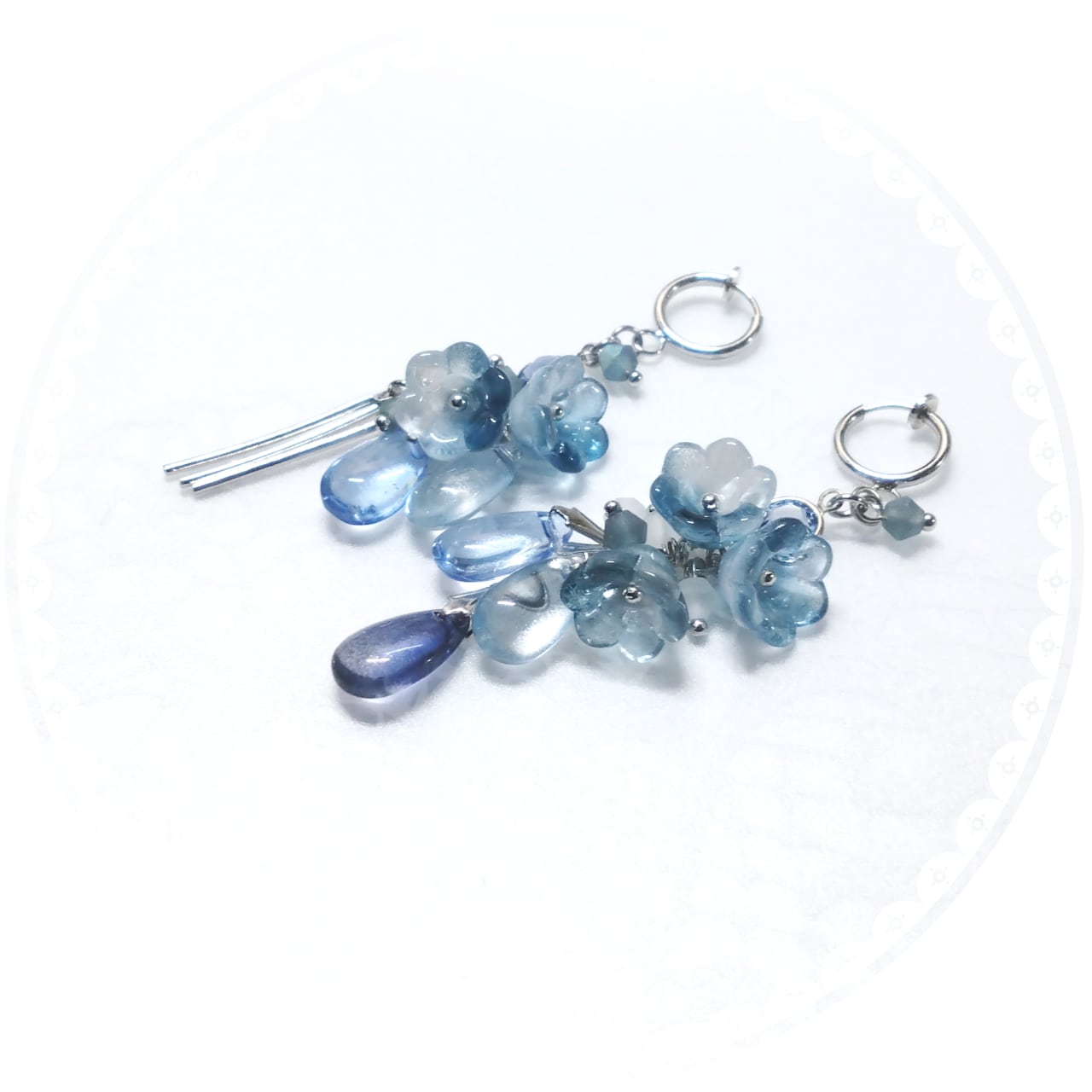 ブルーのグラデーションが華やかなイヤリング