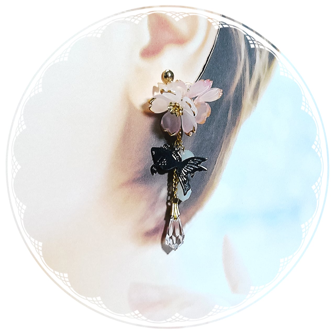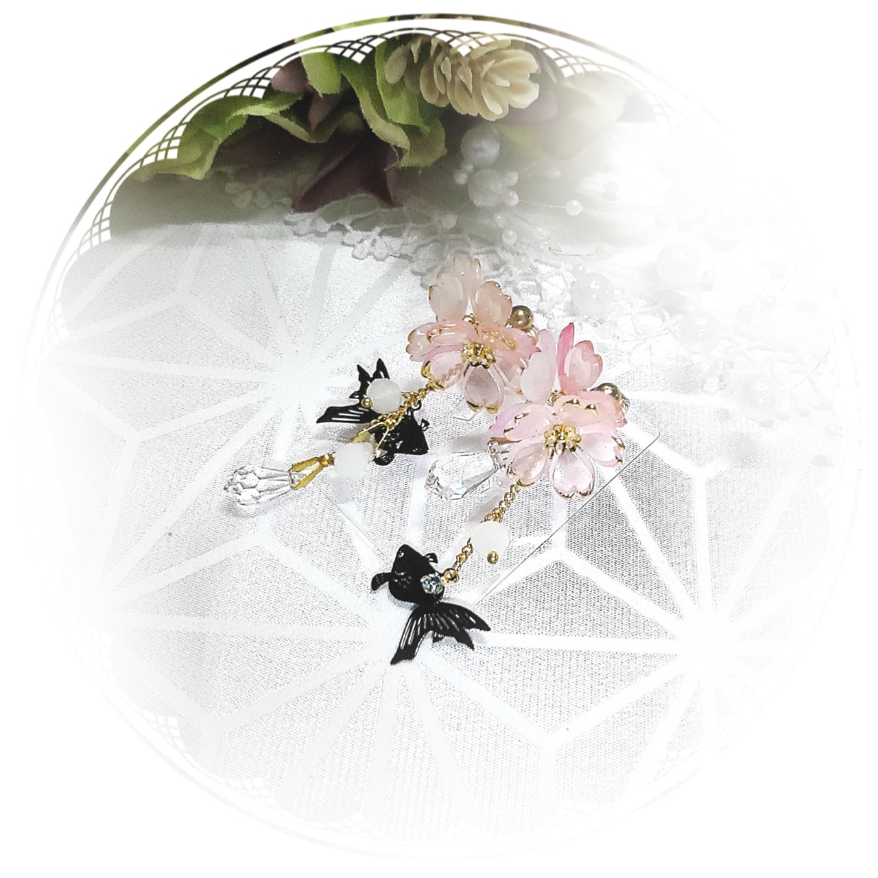 【イヤリング】桜に金魚