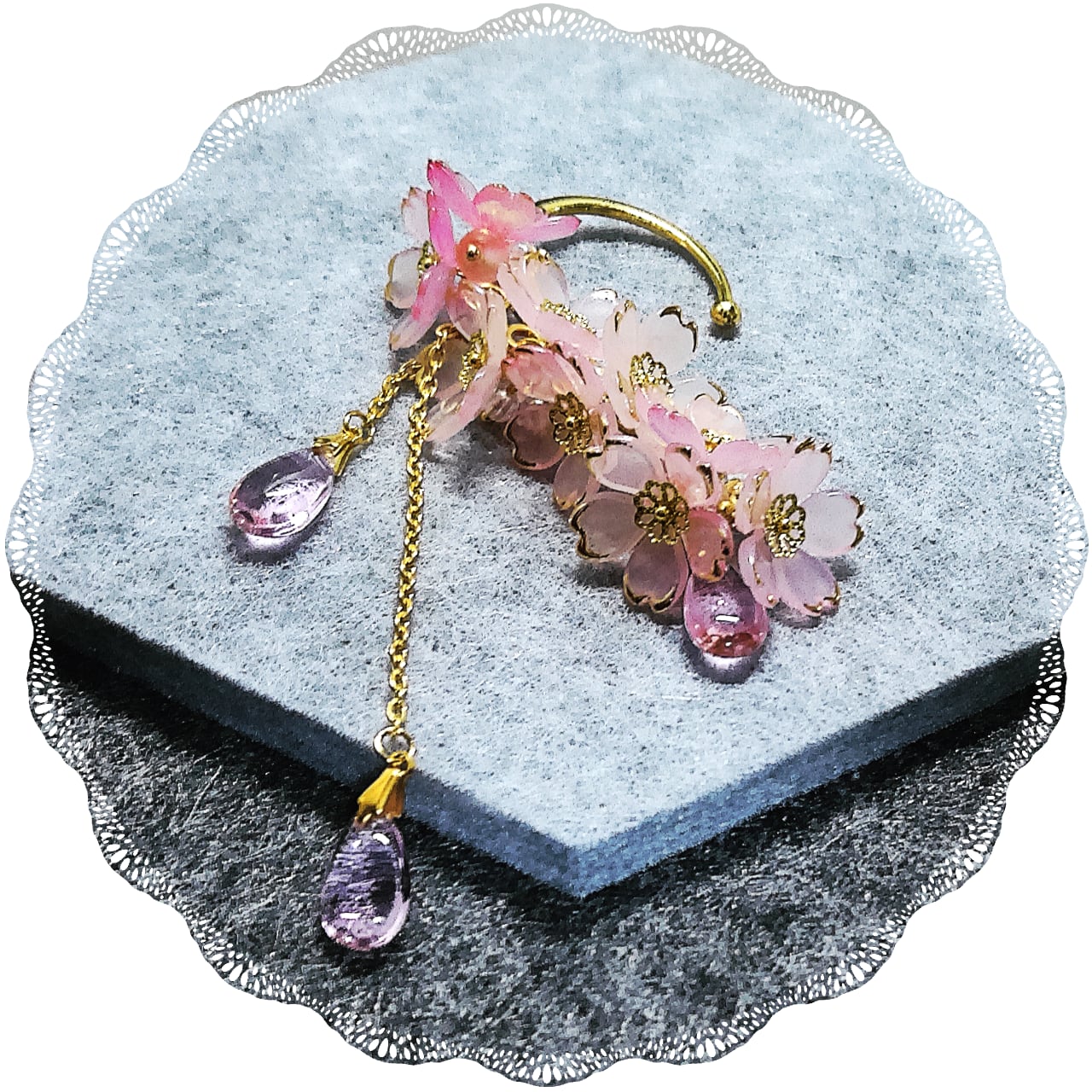 【イヤーフック】灰桜の滴り