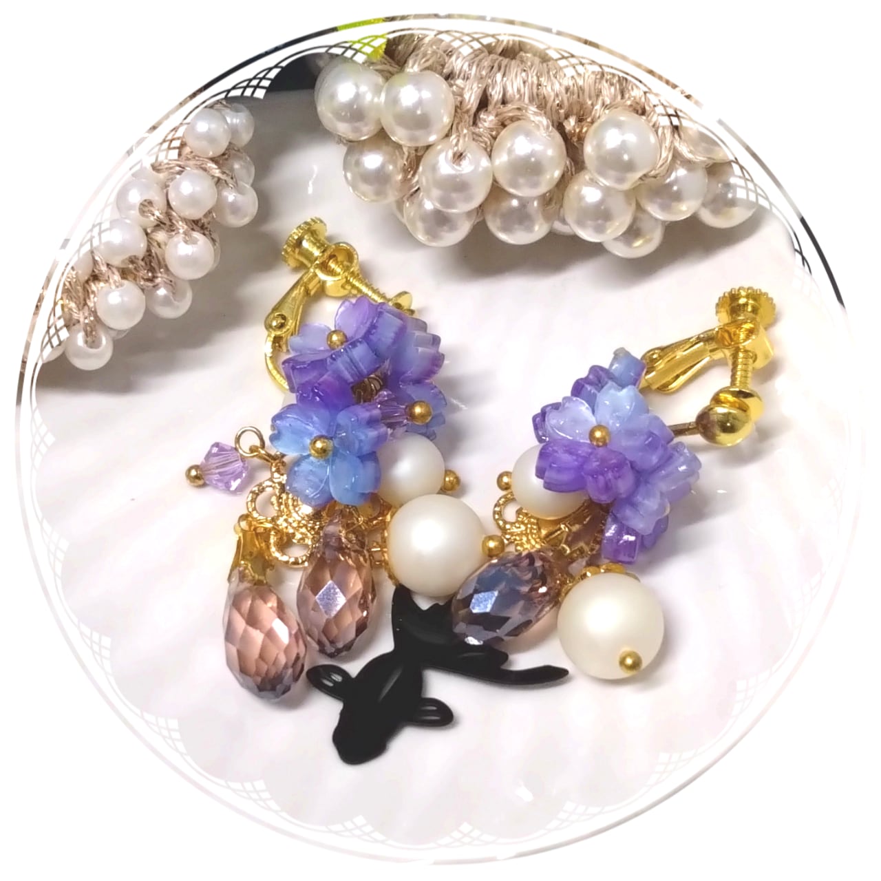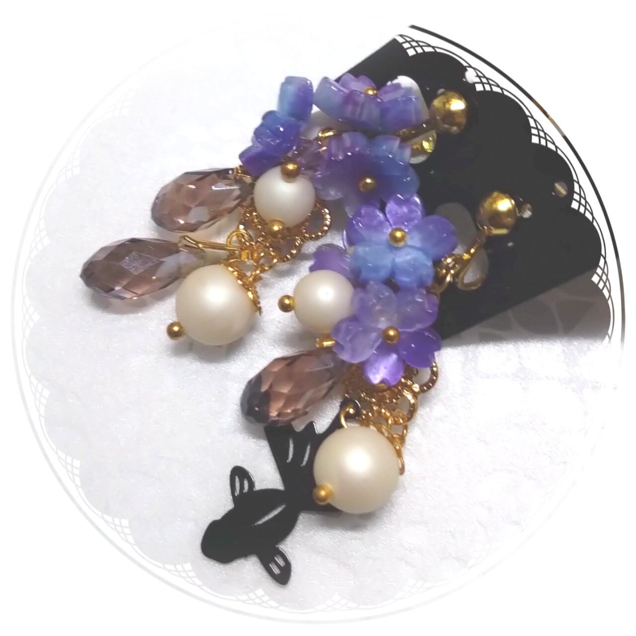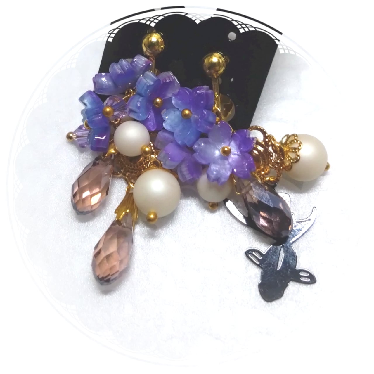 #紫色 #パープルカラー #黒金魚 #浴衣 #着物 #かわいい #和風 #イヤーアクセサリー #500~999円
