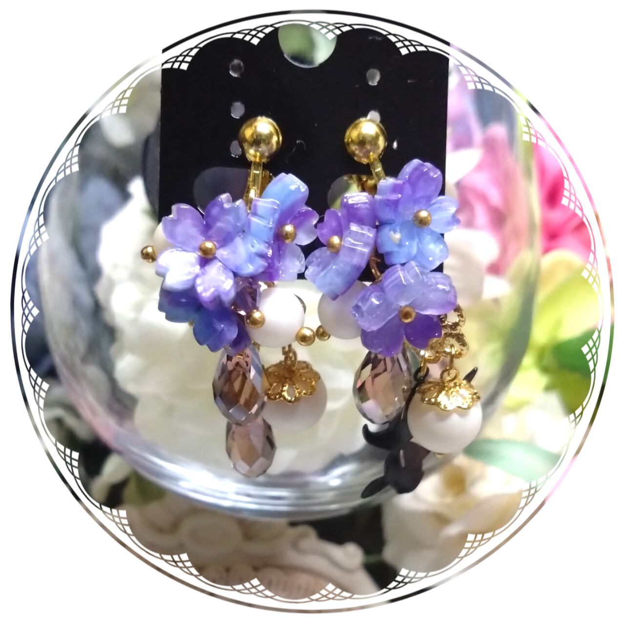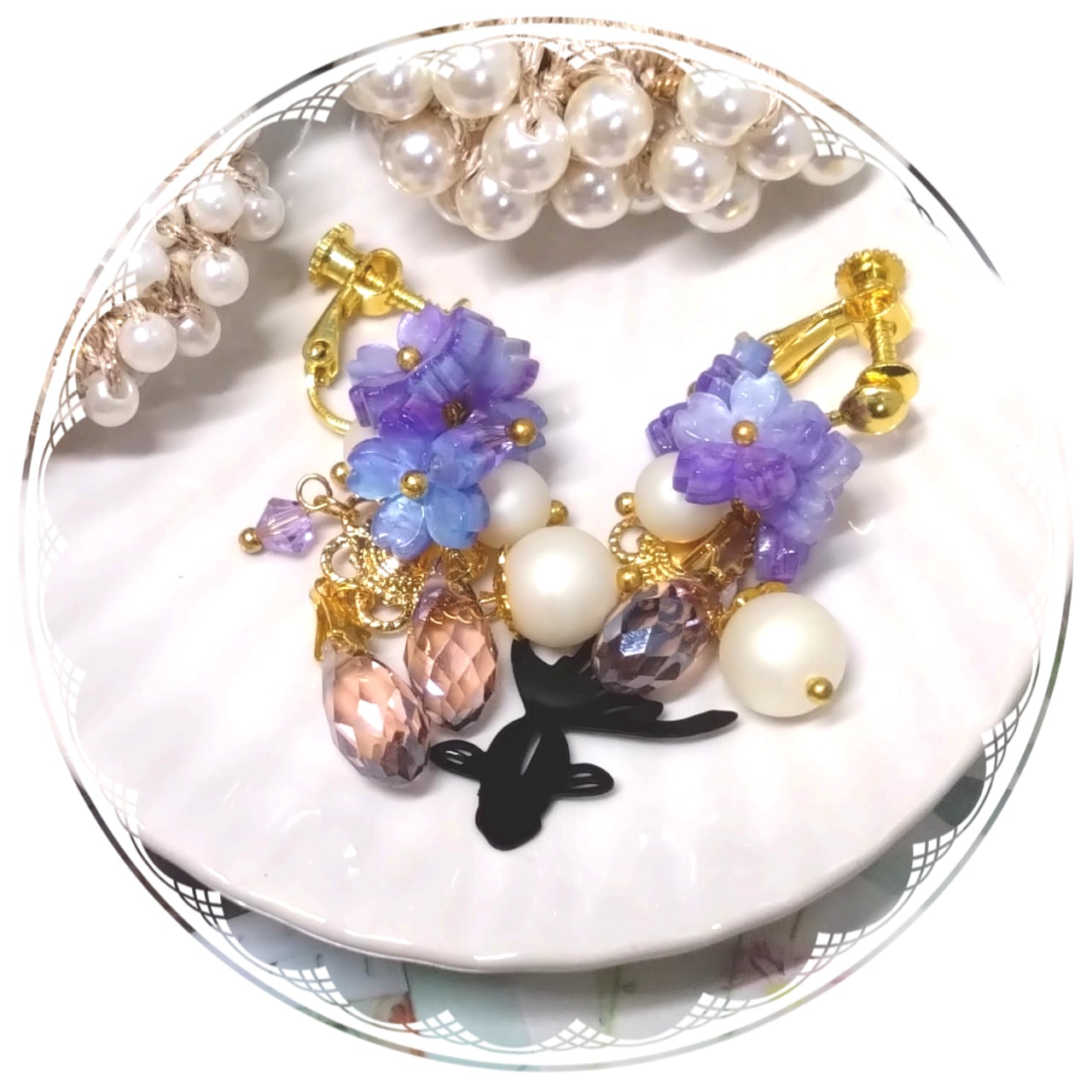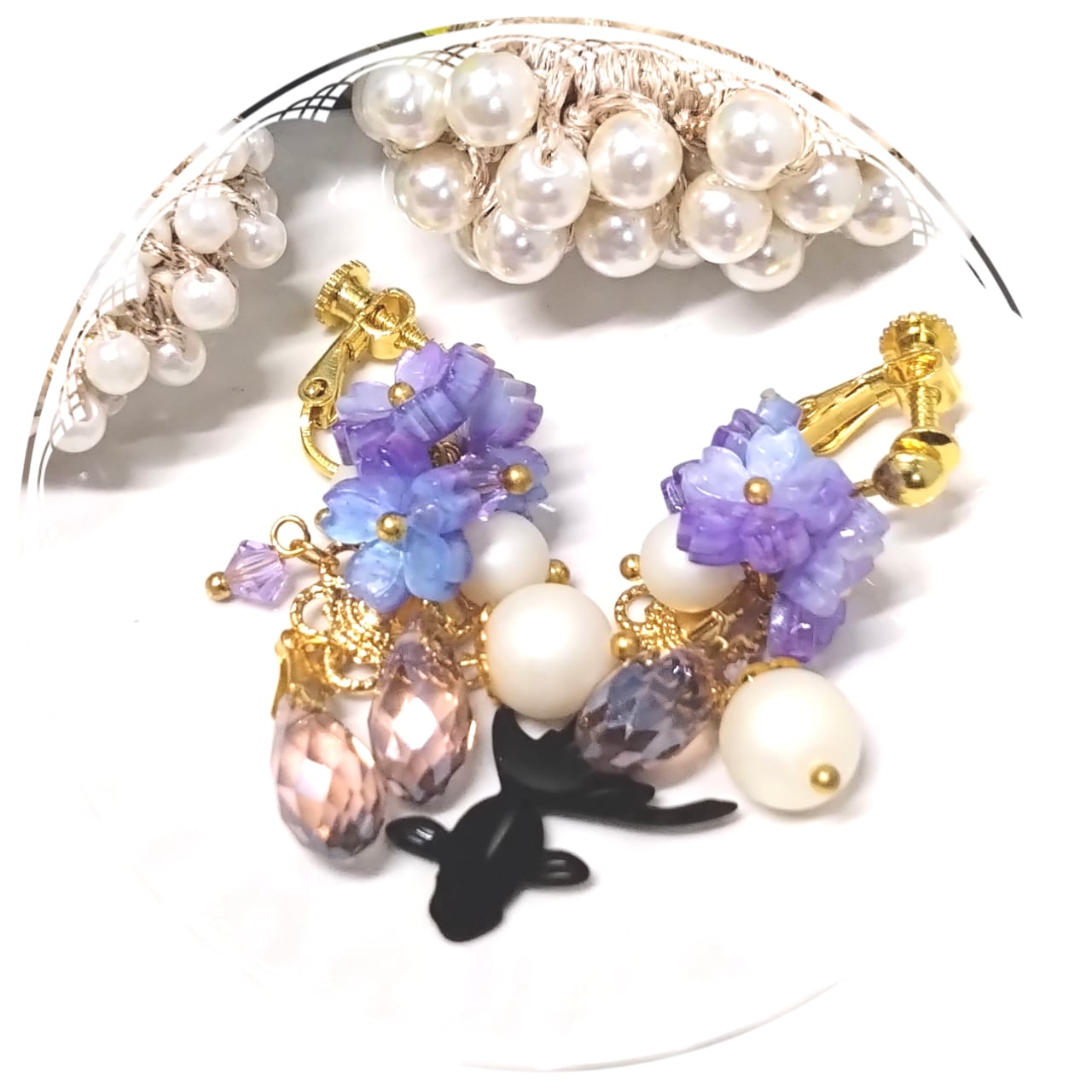 #紫色 #パープルカラー #黒金魚 #浴衣 #着物 #かわいい #和風 #イヤーアクセサリー #500~999円
