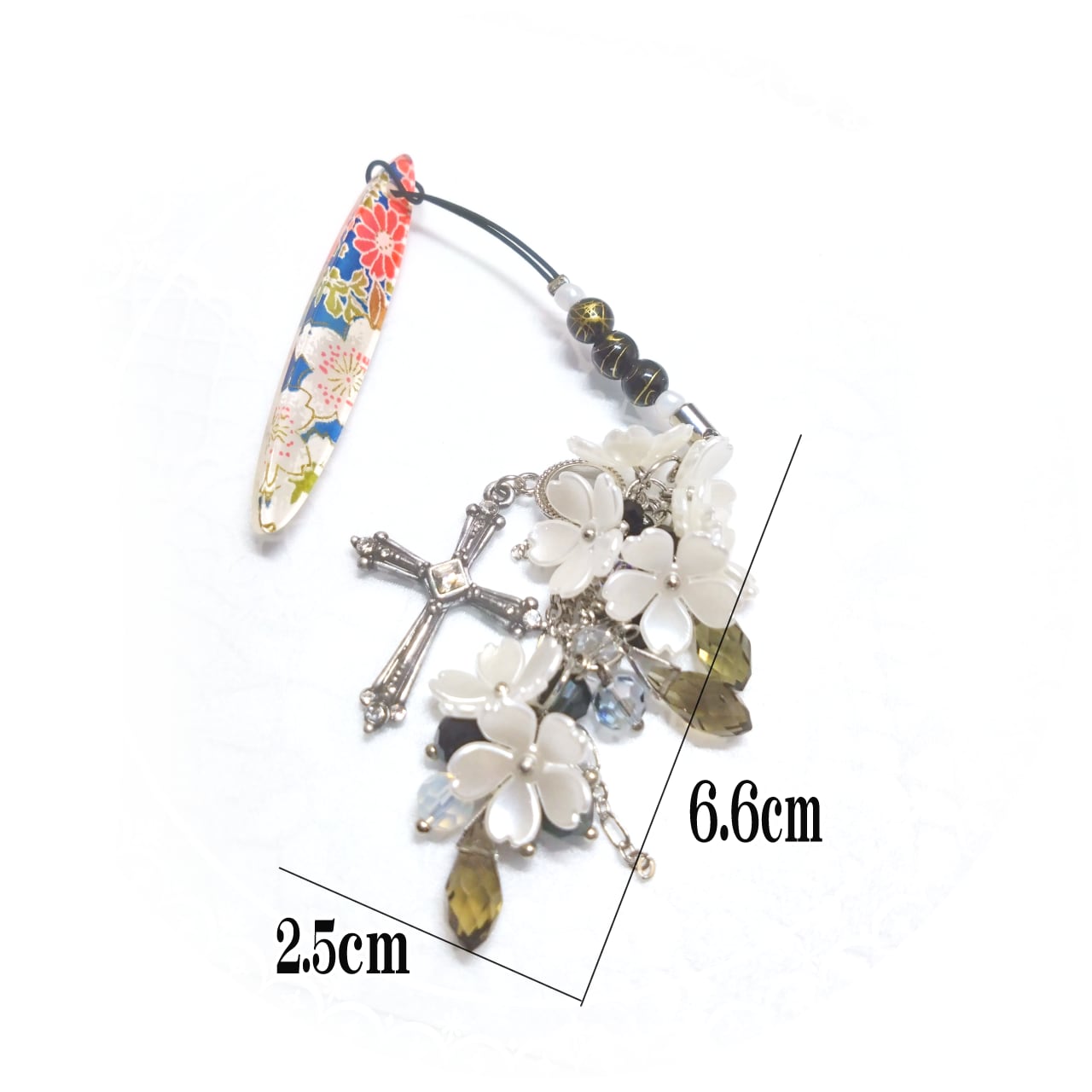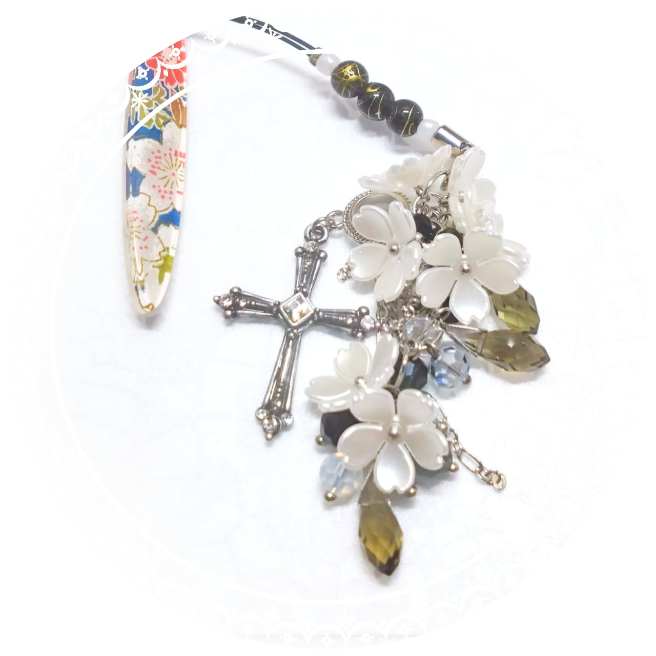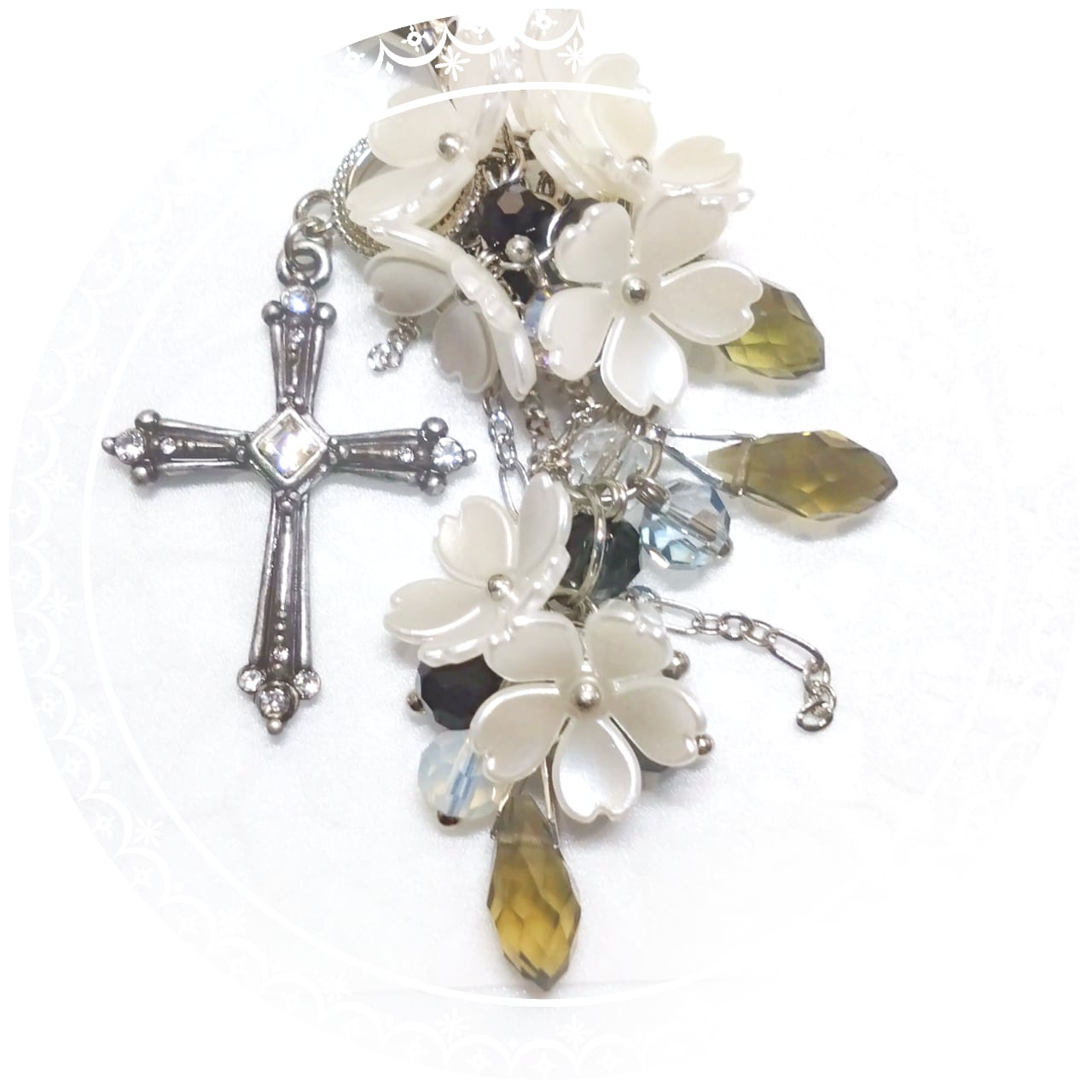 月白色の桜を重ねグレージュカラーのガラスビーズを挿し色に